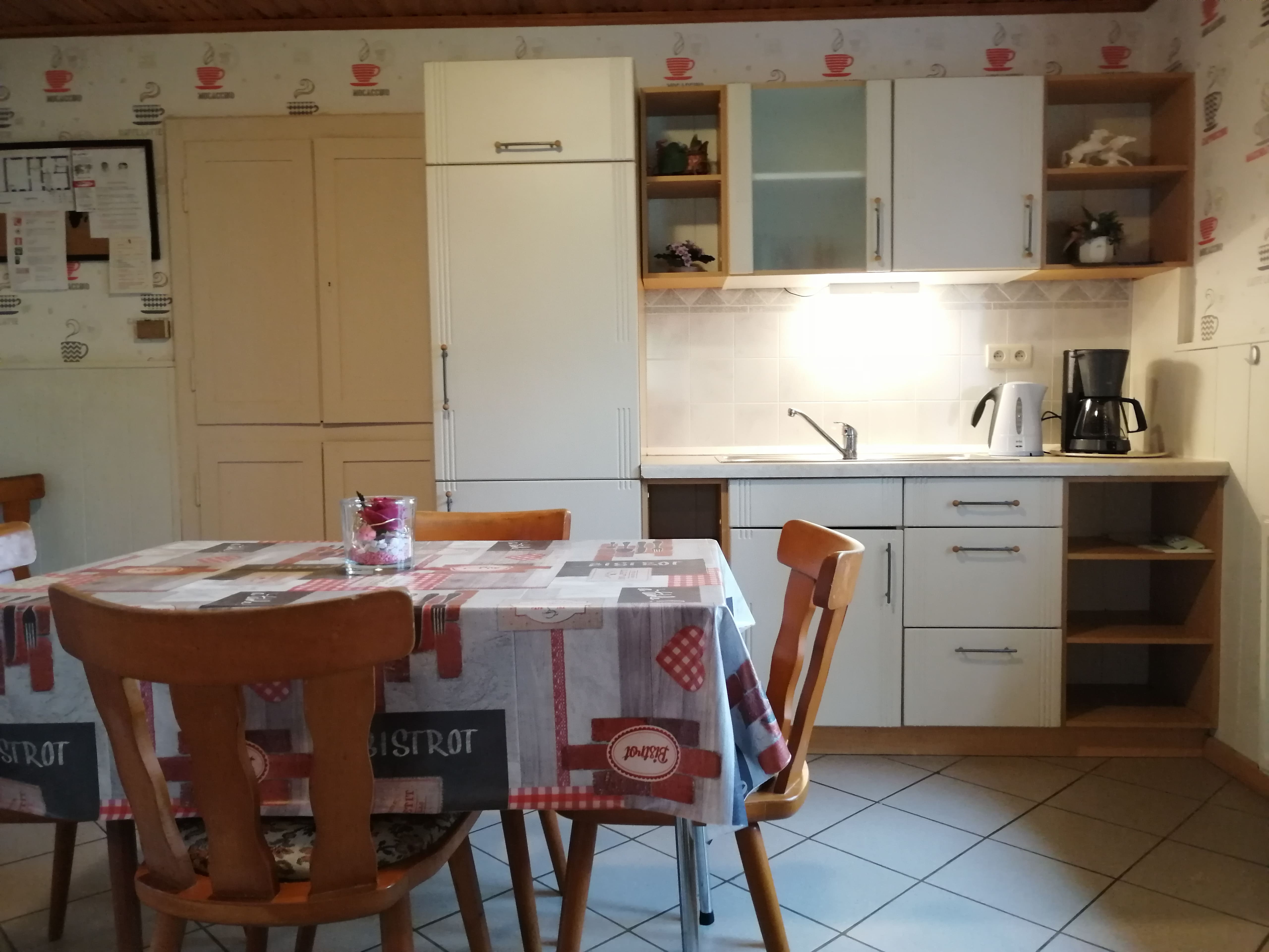 Op de begane grond vindt u een grote keuken, die is uitgerust met alle keukengerei. Daarnast vindt u een mooie open woon- en eetkamer met twee banken, eén daarvan kan gebruikt worden als slaapbank. Er is onder andere TV Vlaanderen, en gratis WIFI.